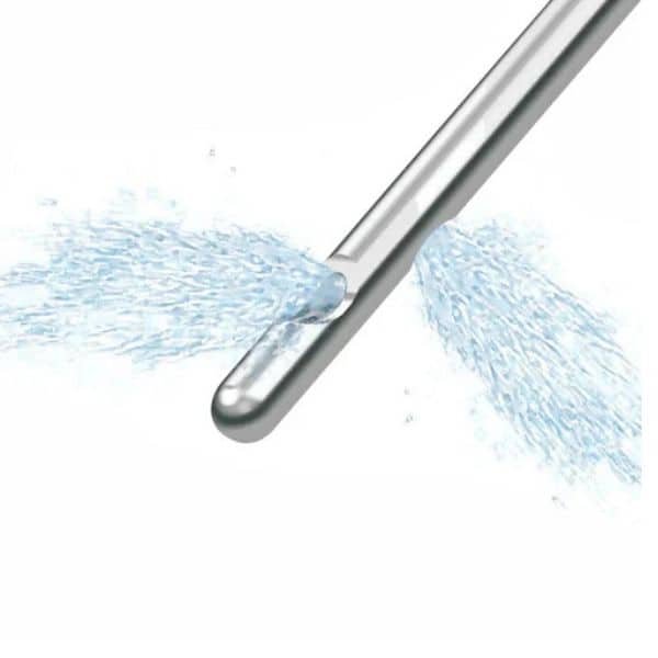 Irrigation needle has a bendable double port side with closed end which eliminates hydraulic pressure to apex and ensures excellent irrigation. It comes in two sizes: 22MM used for posterior teeth and 26MM used for anterior teeth.