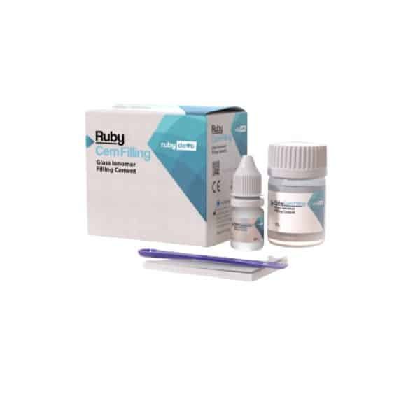 Biocompatible radiopaque powder and liquid glass ionomer filling cement.
